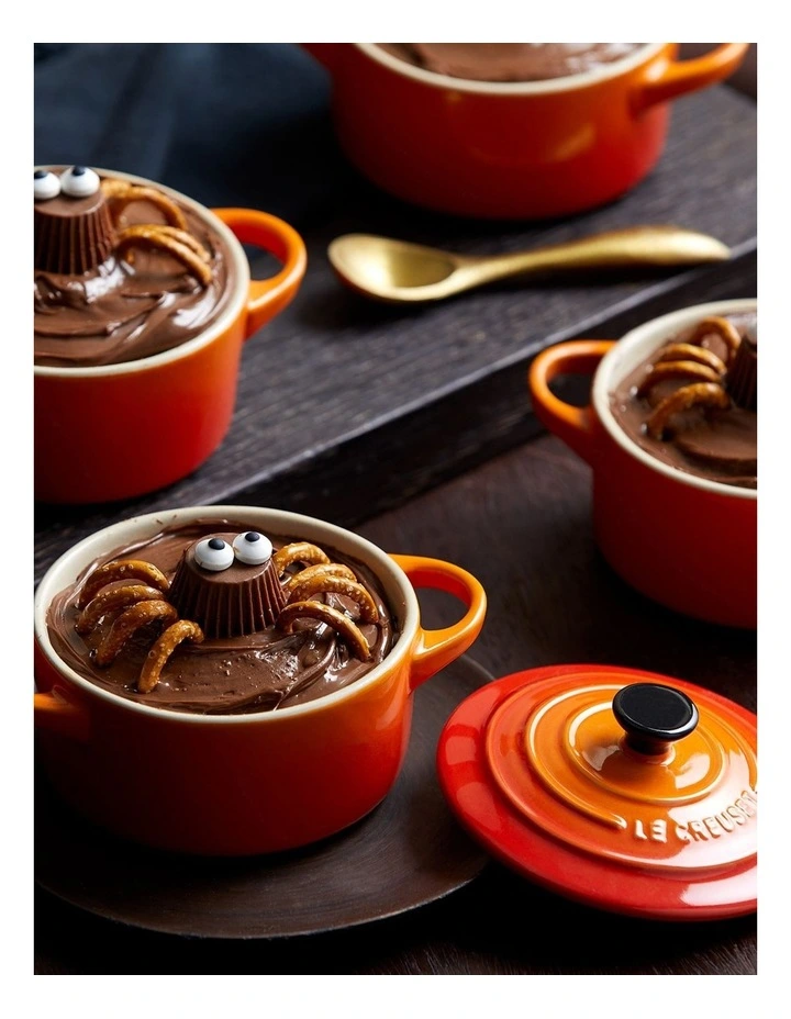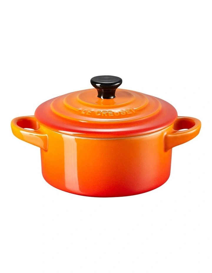 Le Creuset Mini Casseroles are perfect for cooking and serving individual soups, stews, gratins, souffles and desserts. They are also an ideal shape and size for dips, condiments, nuts and olives. The lid also makes it practical for heating up sauces in the microwave or keeping snacks fresh.