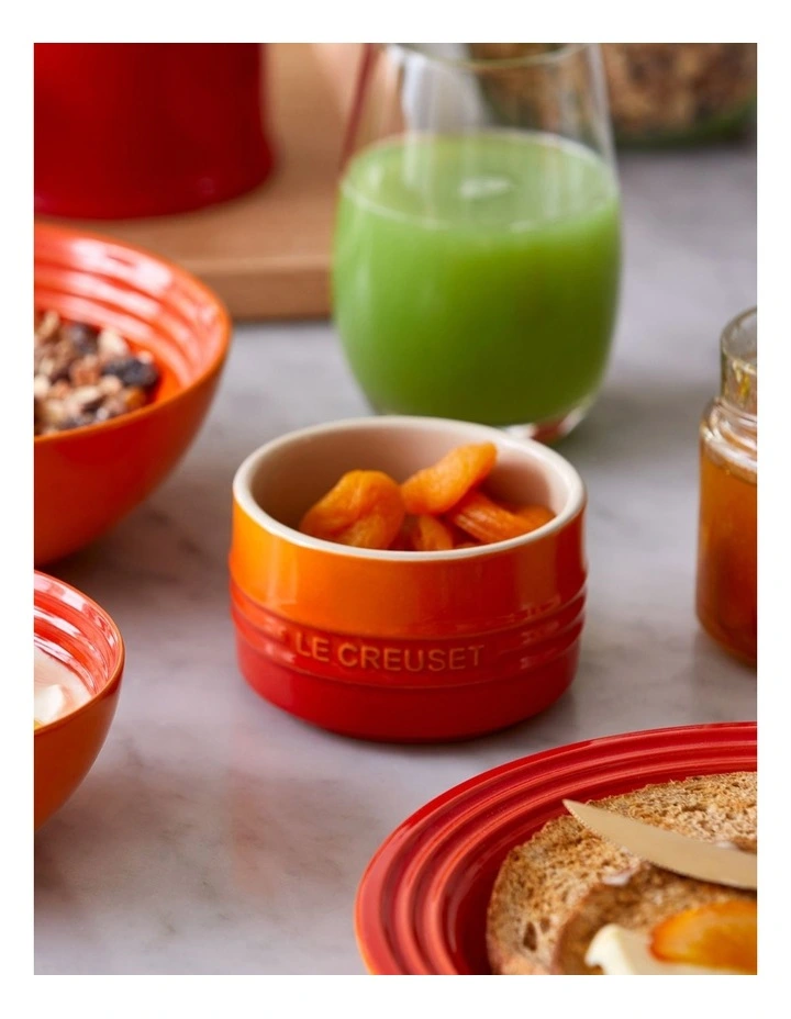 The stackable ramekin is suitable for serving and cooking a wide variety of recipes, including both desserts and savory or use to hold ingredients while preparing. The stepped design allows for stacking with the same ramekins to save space and ideal for serving individual portions, dips and condiments.Β