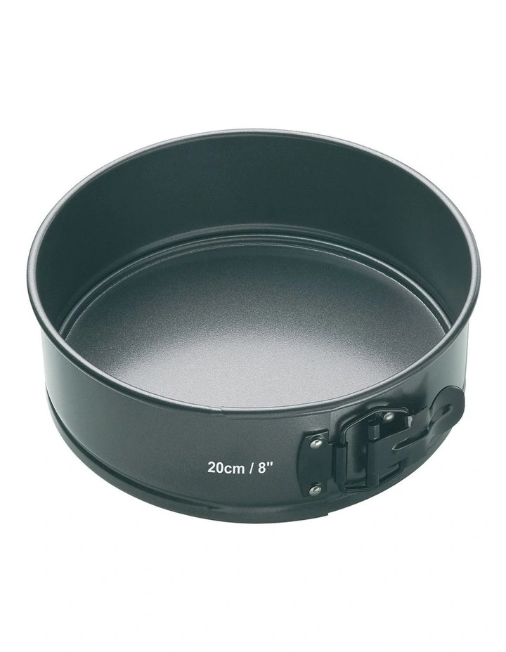 Making fruit, sponge and cheesecakes a piece of cake with this loose base springform pan that also features a quick release clasp. Manufactured from heavy duty carbon steel, with a double non-stick coating, this cake pan forms part of the MasterCraft award winning collection that guarantees many years of satisfying cooking and baking.