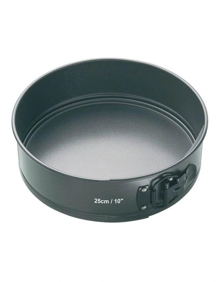 Ideal for making a variety of fruit, sponge and cheesecakes, including wedding and celebration cakes. Manufactured from heavy duty carbon steel, the double non-stick coating and the loose base ensure easy release every time. This spring form cake pan forms part of the MasterCraft award winning collection that guarantees many years of satisfying cooking and baking.