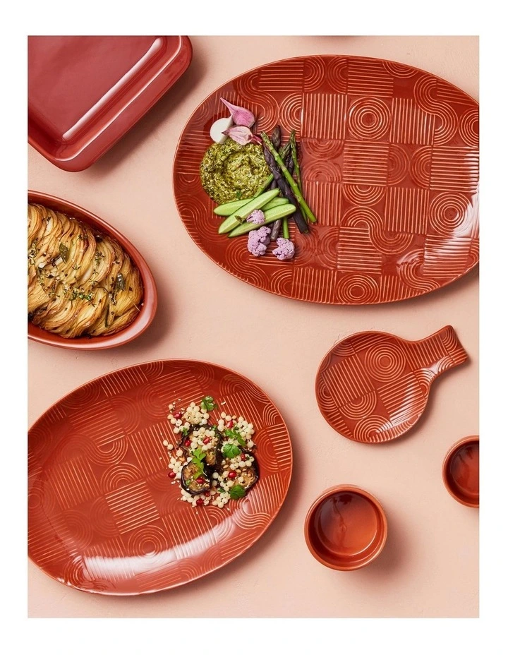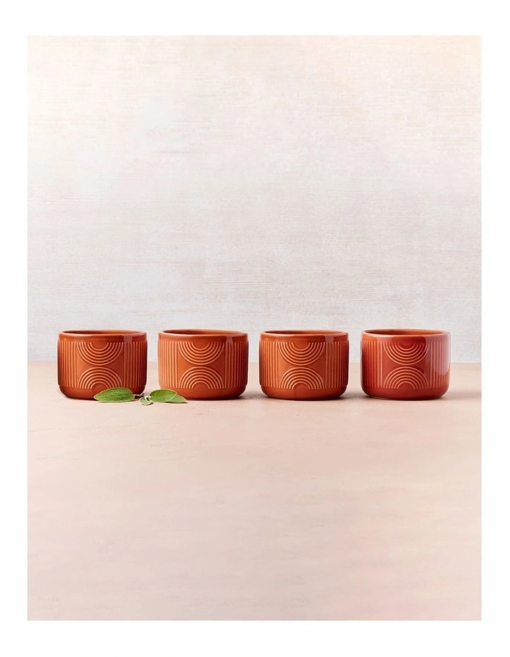 These Arc 10x7cm ramekins in terracotta are the perfect way to serve sauces, sides and seasonings at your next dinner party. Made from quality stoneware, they feature a unique embossed pattern inspired by Celtic symbols and Nordic runes. Designed to complement the rest of the Arc collection, they’re also the ideal way to add a pop of colour to a white or neutral setting. Beautifully gift boxed in a set of four, they’re a must-have for any host.