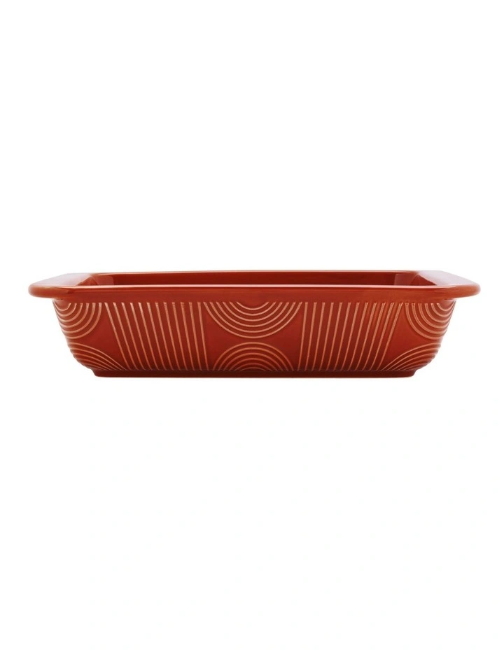 The Arc 26.5×20.5cm rectangular baker in terracotta is the perfect way to serve your favourite bakes and casseroles. Made from quality stoneware, it features a unique embossed design inspired by Celtic symbols and Nordic runes. A stunning piece of statement bakeware, it gives beautiful presentation straight from the oven to the table. Ideal for dinner parties and big family meals, it’s the easy way to entertain in style.