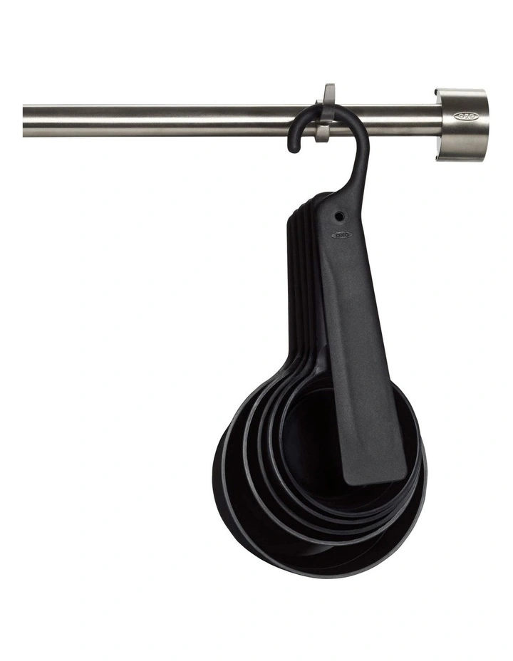 Features: Set includes: scraper, 1/4 cup, 1/3 cup, 1/2 cup, 2/3 cup and 1 cup; Unique snapping feature keeps Cups together for storage; Easily unsnap one Cup at a time while the rest stay connected.