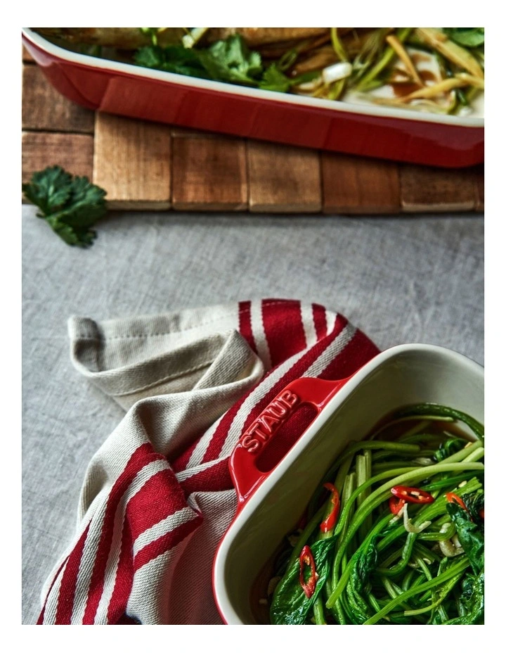 Designed in France, Staub Ceramics are suitable for all kitchens and make for perfect oven to table dining. Staub Ceramics offer unparalleled performance, durability and design. The pieces are fired twice at very high temperature, making them very resistant to impact and thermal shock. The beautiful glass porcelain finish will not fade or diminish with time.