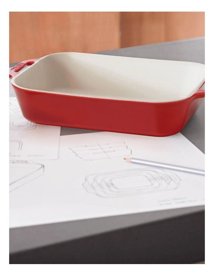 The elegance and functionality of Staub Ceramics flows from freezer, to oven, to table. The glass porcelain finish matches Staub’s cast iron to mix perfectly on your table.