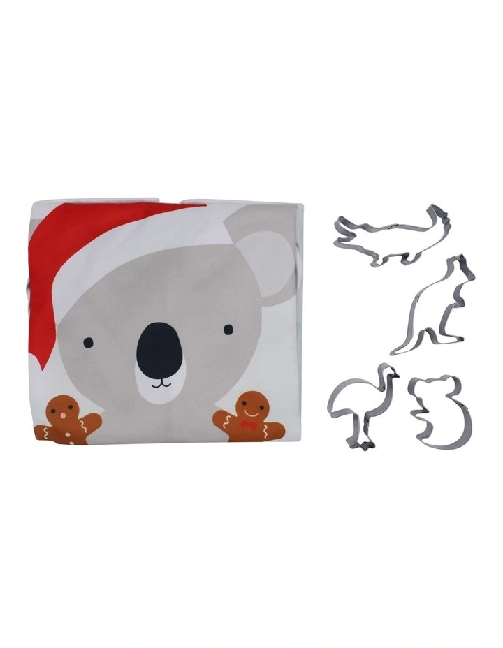 Beautifully gift-boxed in our Christmas themed print, the Christmas Kids Baking Set is perfect for kids baking with the family or as a gift. Featuring the uniquely designed Koala Official Cookie Tester Apron and a collection of Australian shaped wildlife cookie cutters.