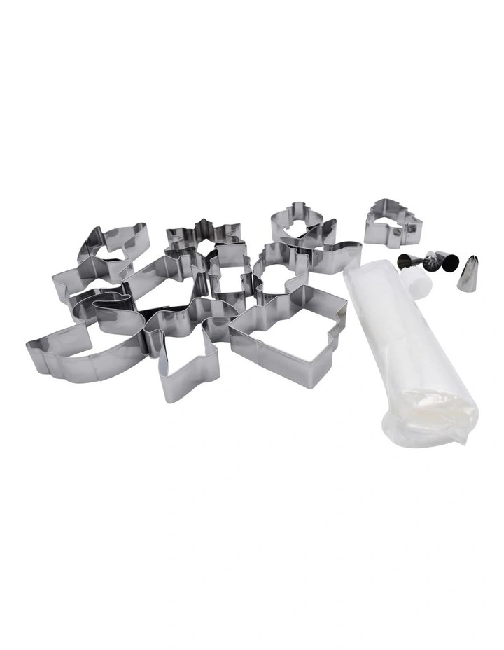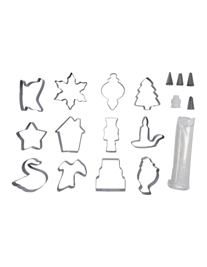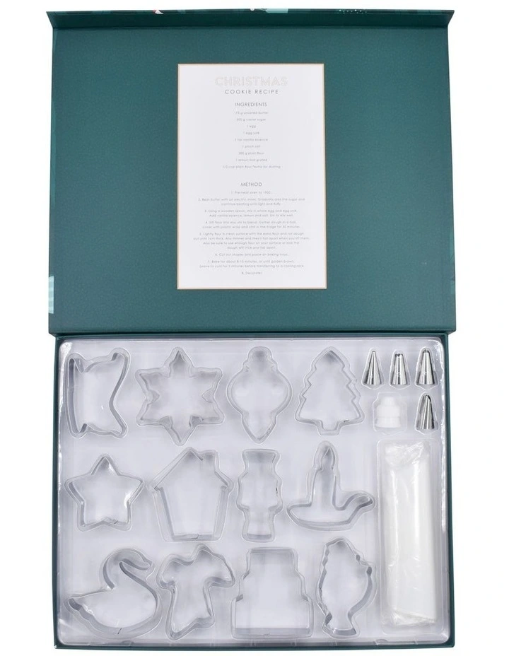 Beautifully gift-boxed in our Christmas themed print, the Christmas Cookie Making Kit is perfect for preparing cookies with the family or as a gift. Featuring 27 pieces of Christmas themed cookie cutters and piping accessories.